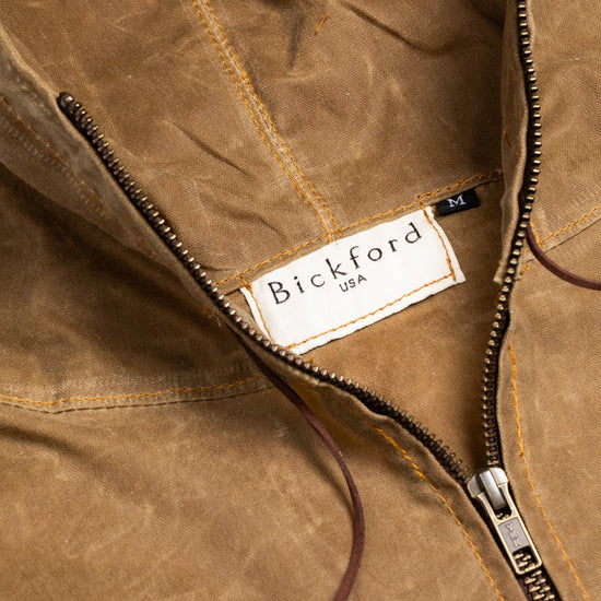 The Bickford Waxed Sailcloth Anorak Jacket was finally born after a year of rigorous testing and design, it is the pinnacle of rugged utility. Designed with care in Burlington, Vermont, and meticulously handmade in Massachusetts, this jacket is built to be a true original.